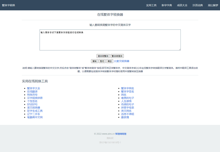 在線簡繁體字轉換工具(https://www.aies.cn/)已被三體網址大全收錄在網址百科信息庫中,所在分類目錄為”生活服務 > 查詢 > 教育學習“目錄,百科頁面地址:http://m.star-arquitectos.com/siteinfo/11293.html。三體網址大全匯聚國內優(yōu)秀網站大全,是提升網站外部鏈接流行度以及影響力的權威分類目錄及收錄提交入口,歡迎廣大優(yōu)質網站提交收錄申請。
