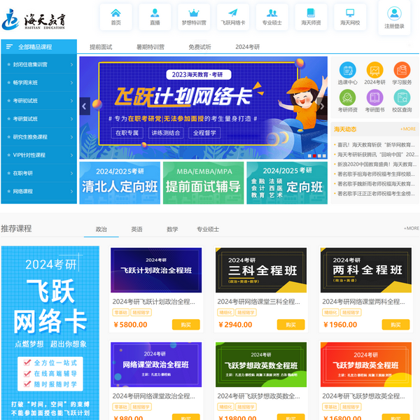 海天考研網(wǎng)—中國(guó)考研輔導(dǎo)責(zé)任品牌,海天教育旗下考研官方網(wǎng)站。海天考研網(wǎng)提供考研英語(yǔ)、考研數(shù)學(xué)、考研政治、考研專業(yè)課等考研輔導(dǎo)培訓(xùn)班,以及考研報(bào)名、考研成績(jī)查詢、考研大綱、考研真題等。
