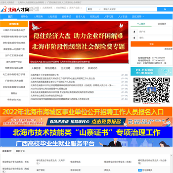 北海人才網(wǎng)是北海人力資源市場***官方網(wǎng)站,為企業(yè)和求職者提供網(wǎng)上招聘、現(xiàn)場招聘、網(wǎng)上求職、資格考試、人才引進(jìn)等服務(wù),公開人力資源和社會保障方面政策法規(guī),鏈接廣西數(shù)字人社服務(wù)平臺、廣西一體化網(wǎng)上政務(wù)服務(wù)平臺。