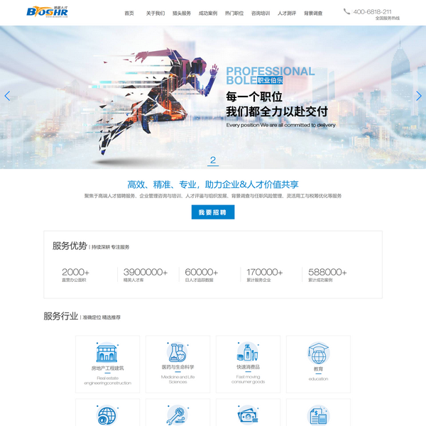 博思人才集團(tuán)始創(chuàng)于1995年,集團(tuán)聚焦為優(yōu)秀企業(yè)提供高端人才獵聘服務(wù)、企業(yè)管理咨詢與培訓(xùn)、人才評鑒與組織發(fā)展、背景調(diào)查與任職風(fēng)險(xiǎn)管理、靈活用工與外包服務(wù)等系列人力資源解決方案,打造省心安心的一站式人力資源服務(wù)平臺,已逐步成為中國人力資源服務(wù)業(yè)的重要力量。