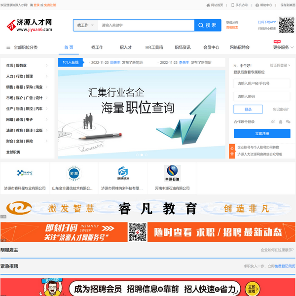 濟(jì)源人才網(wǎng)為濟(jì)源人才提供濟(jì)源***招聘信息,濟(jì)源人才招聘、濟(jì)源人才網(wǎng)、濟(jì)源招聘網(wǎng)、人才市場(chǎng)、求職指導(dǎo)、職業(yè)測(cè)評(píng)、獵頭服務(wù)、校園招聘等求職服務(wù),幫在濟(jì)源、招聘、求職者找到濟(jì)源知名企業(yè)和濟(jì)源高薪工作。為濟(jì)源招聘企業(yè)提供職位發(fā)布,濟(jì)源高級(jí)人才的簡(jiǎn)歷搜索、濟(jì)源校園招聘、濟(jì)源招聘外包代理、濟(jì)源獵頭等服務(wù)。