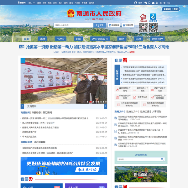 南通市人民政府網(wǎng)站是南通市人民政府、市級政府部門、轄市(縣)區(qū)人民政府在國際互聯(lián)網(wǎng)上發(fā)布政府信息和提供在線服務的綜合平臺,網(wǎng)站***時間權威發(fā)布南通市政務信息,面向社會提供與政府業(yè)務相關的服務,建設基于互聯(lián)網(wǎng)的政府與公眾互動交流新渠道。