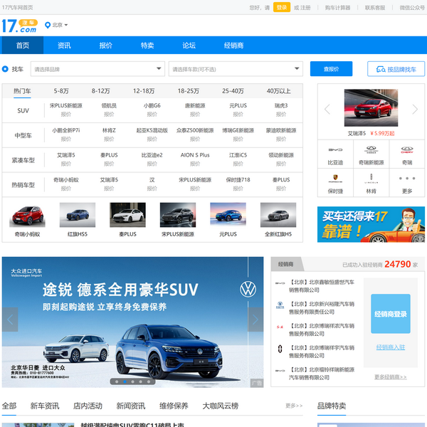「17汽車網(wǎng)」北京汽車資訊,北京本地經(jīng)銷商***報(bào)價(jià),汽車4S店優(yōu)惠/品牌促銷、汽車團(tuán)購活動,品牌齊全,就在17汽車網(wǎng)!
