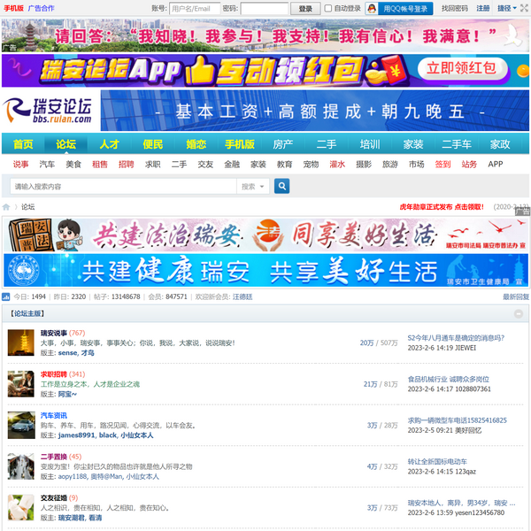 論壇創(chuàng)辦于1999年,是瑞安門戶網(wǎng)站,人氣旺盛,功能豐富,旗下『瑞安論壇』擁有瑞安說事、吹水泡泡、求職招聘等熱門版塊,更是瑞安市民交流的重要平臺(tái)。