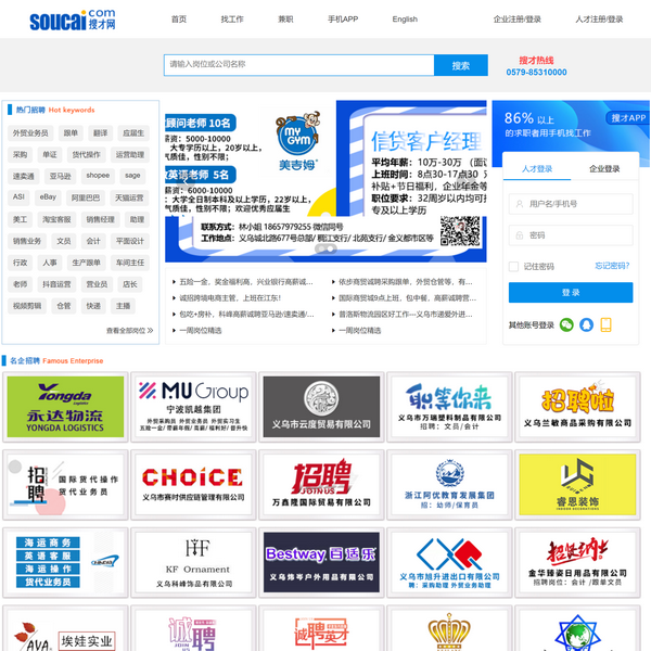 義烏人才網(wǎng)-搜才網(wǎng)(soucai.com)是義烏較早較具影響力的專業(yè)人才招聘網(wǎng)站,提供人才簡(jiǎn)歷免費(fèi)發(fā)布,企業(yè)招聘,校園招聘,獵頭服務(wù)。搜才熱線:0579-85310000。