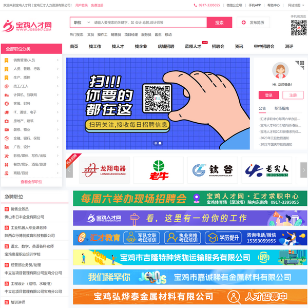寶雞人才網(wǎng)(www.job0917.com)寶雞市***的人才招聘網(wǎng)站,提供寶雞***招聘,寶雞招聘會,寶雞報紙招聘,勞務(wù)派遣,委托招聘,寶雞獵頭等服務(wù)。