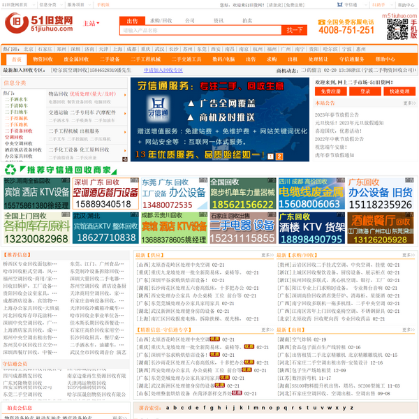 51舊貨網(wǎng)是舊貨交易信息平臺,二手設備買賣,二手交易平臺;匯聚:二手車,二手設備,二手設備回收,二手工程機械,二手貨,工廠設備,處理閑置,廢金屬回收,廢舊物資回收,廢金屬回收,廢銅回收,廢鐵回收,價格行情,積壓庫存,舊貨回收,廢舊電子產(chǎn)品,出租求租等二手交易信息及各類回收商家,資源再利用,打造循環(huán)經(jīng)濟。是國內(nèi)領先的網(wǎng)上舊貨交易平臺,傳統(tǒng)舊貨行業(yè)開拓網(wǎng)上市場的***網(wǎng)站。