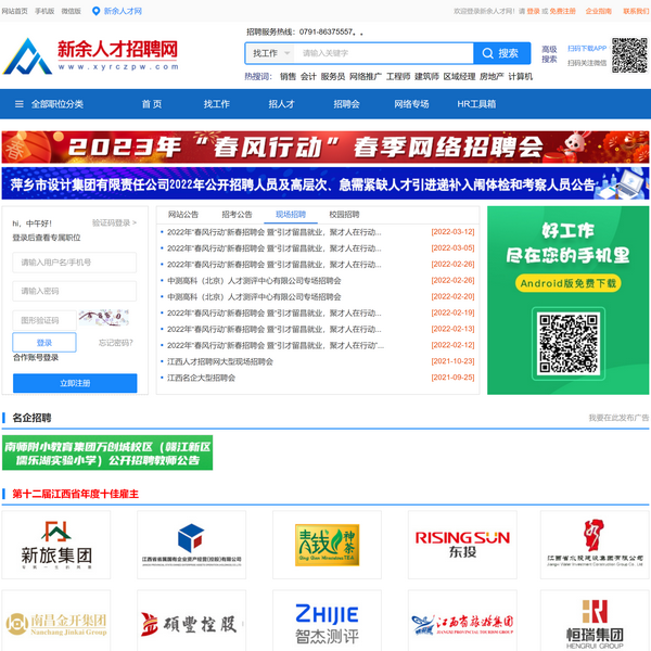 【新余人才網】新余聚才人力資源市場官網,新余人才招聘網是招聘與求職的***網站,擁有80萬新余人才庫供新余招聘企業(yè)查詢挑選。
