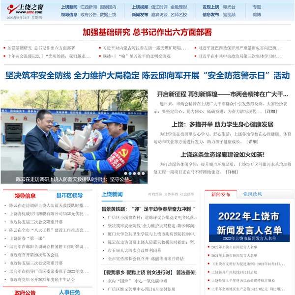 上饒之窗網(wǎng)站是中共上饒市委宣傳部主辦的大型綜合性新聞門戶網(wǎng)站,現(xiàn)開設(shè)有上饒論壇、博客、上饒新聞、綜合新聞、網(wǎng)絡(luò)電視、圖庫、市長熱線、民聲通道、法律、旅游、生活、時尚、領(lǐng)導(dǎo)信息、網(wǎng)上政府、鵝湖講壇、嘉賓訪談、手機報、百事通等頻道。