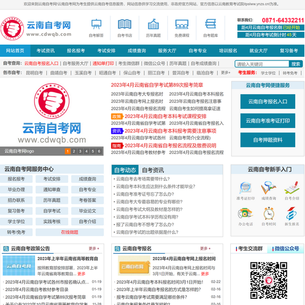 云南自考網(wǎng)(www.cdwqb.com)為云南傳愛(ài)網(wǎng)絡(luò)科技有限公司旗下的成人教育考試門(mén)戶網(wǎng)站,網(wǎng)站整合了成人教育相關(guān)信息服務(wù)以及深度整合,著力為成人教育學(xué)生提供全方位的資訊服務(wù)和打造專(zhuān)業(yè)的成人教育服務(wù)平臺(tái)。