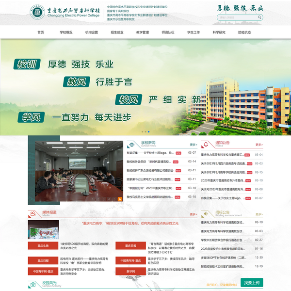 學(xué)校立足電力,服務(wù)重慶,面向全國,以電力類全日制高等職業(yè)教育為主,統(tǒng)籌職前職后教育,培養(yǎng)適應(yīng)電力行業(yè)和地方經(jīng)濟、社會發(fā)展需要的高素質(zhì)技術(shù)技能型人才。在長期的辦學(xué)歷程中,學(xué)校堅持弘揚“校企一家,聯(lián)合育人”的辦學(xué)特色,秉承“厚德、強技、樂業(yè)”的校訓(xùn),營造“嚴細實新”的校風(fēng),踐行“行勝于言”的教風(fēng)和“一直努力、每天進步”的學(xué)風(fēng),主動服務(wù)國家戰(zhàn)略、服務(wù)區(qū)域經(jīng)濟社會發(fā)展、服務(wù)電力行業(yè)轉(zhuǎn)型升級發(fā)展。