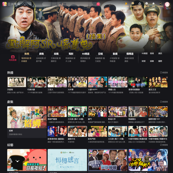 ATV 亞洲電視經(jīng)典有限公司為你搜羅全球精彩直播和點(diǎn)播節(jié)目,隨時(shí)隨地,全方位投入亞視24小時(shí)娛樂(lè)享受!