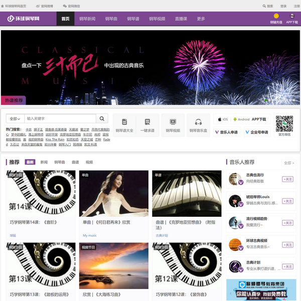 環(huán)球鋼琴網(wǎng)是鋼琴行業(yè)集團(tuán)化運作的門戶網(wǎng)站。網(wǎng)站提供海量免費鋼琴資源,并且每天以100+的數(shù)量持續(xù)更新,能夠做到有曲可聽、有譜可查,成為全網(wǎng)值得信賴的鋼琴學(xué)習(xí)者的平臺化、工具化網(wǎng)站。