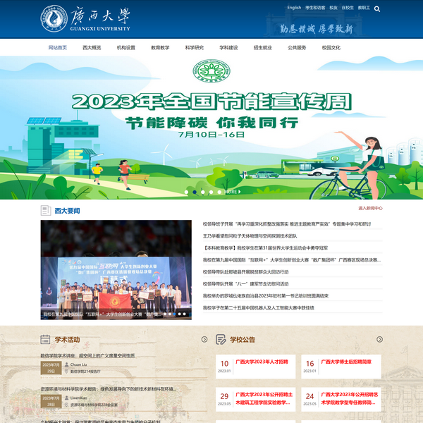 廣西大學坐落于素有“中國綠城”之稱的廣西首府南寧,是廣西***的國家“211工程”建設學校,“雙一流”建設高校,教育部和廣西壯族自治區(qū)人民政府“部區(qū)合建”高校。