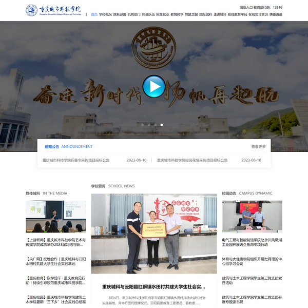 重慶城市科技學(xué)院(https://www.cqcst.edu.cn/)已被三體網(wǎng)址大全收錄在網(wǎng)址百科信息庫中,所在分類目錄為”其他分類 > 院校 > 職業(yè)學(xué)校“目錄,百科頁面地址:http://m.star-arquitectos.com/siteinfo/4809.html。三體網(wǎng)址大全匯聚國內(nèi)優(yōu)秀網(wǎng)站大全,是提升網(wǎng)站外部鏈接流行度以及影響力的權(quán)威分類目錄及收錄提交入口,歡迎廣大優(yōu)質(zhì)網(wǎng)站提交收錄申請。