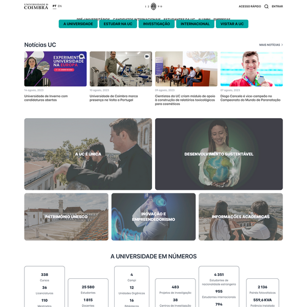 科英布拉大學(xué)(葡萄牙文:Universidade de Coimbra,發(fā)音:[univ??si?dad(?) d? ku??b??])創(chuàng)建于1290年,是伊比利亞半島上歷史悠久的高等學(xué)府。該校所在的古都科英布拉位于首都里斯本以北,1139-1260年曾是葡萄牙的首都??朴⒉祭髮W(xué)下屬有八個(gè)院系:涵蓋藝術(shù)、工程、人文、數(shù)學(xué)、自然科學(xué)、社會科學(xué)、體育與科技等多個(gè)學(xué)術(shù)領(lǐng)域,可授予三個(gè)學(xué)位等級:學(xué)士、碩士以及博士。科英布拉大學(xué)還是科英布拉集團(tuán)的創(chuàng)建地以及創(chuàng)立者之一,廣州國際友城大學(xué)聯(lián)盟創(chuàng)始成員。