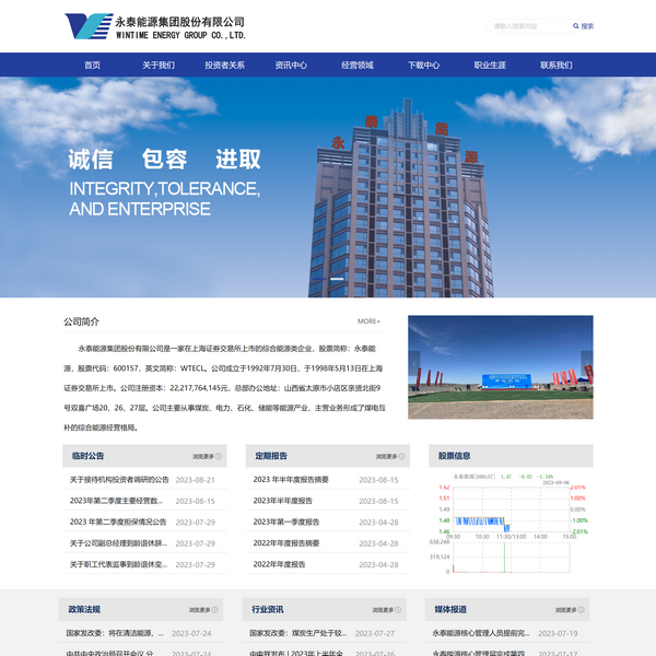 永泰能源集團(tuán)股份有限公司是一家在上海證券交易所上市的綜合能源類企業(yè),股票簡(jiǎn)稱:永泰能源,股票代碼:600157,英文簡(jiǎn)稱:WTECL。公司成立于1992年7月30日,于1998年5月13日在上海證券交易所上市。公司注冊(cè)資本:22,217,764,145元,總部辦公地址:山西省太原市小店區(qū)親賢北街9號(hào)雙喜廣場(chǎng)20、26、27層。公司主要從事煤炭、電力、石化、儲(chǔ)能等能源產(chǎn)業(yè),主營(yíng)業(yè)務(wù)形成了煤電互補(bǔ)的綜合能源經(jīng)營(yíng)格局。