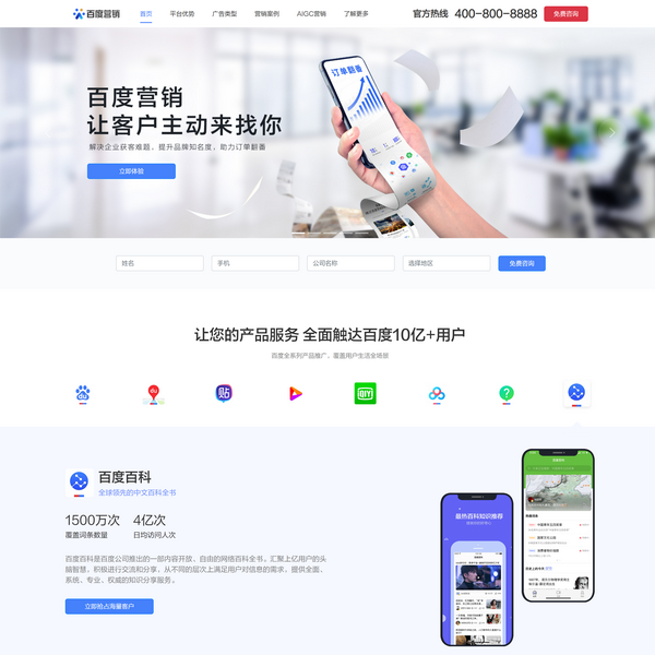 百度營銷,企業(yè)網(wǎng)絡營銷***平臺,為企業(yè)提供搜索廣告、信息流廣告、品牌廣告等多種廣告營銷服務,獲客熱線:400-800-8888。