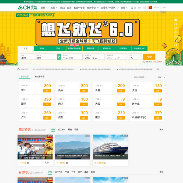 春秋依托上海春秋航空提供飛機(jī)票、國(guó)際機(jī)票、特價(jià)機(jī)票查詢預(yù)訂、打折機(jī)票查詢預(yù)訂定、預(yù)定購(gòu)買國(guó)內(nèi)國(guó)際便宜機(jī)票、低價(jià)機(jī)票、廉價(jià)機(jī)票、電子機(jī)票、航班查詢、飛機(jī)票查詢預(yù)訂等服務(wù),并提供機(jī)票團(tuán)購(gòu)及機(jī)票秒殺等眾多飛機(jī)票優(yōu)惠活動(dòng)。99元,199元國(guó)內(nèi)***價(jià)機(jī)票網(wǎng),為您提供低價(jià)飛機(jī)票,安全,溫馨,優(yōu)質(zhì)的服務(wù)。