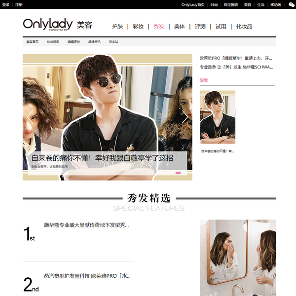 OnlyLady女人志-女性時尚生活平臺秀發(fā)頻道由秀發(fā)護理、流行發(fā)型、秀發(fā)圖片等組成,內(nèi)容主要介紹當(dāng)下的流行發(fā)型,時尚發(fā)型,明星發(fā)型和秀發(fā)護理的相關(guān)知識,為喜歡秀發(fā)和發(fā)型的網(wǎng)友提供秀發(fā)護理知識和海量的發(fā)型圖庫供于參考學(xué)習(xí)!