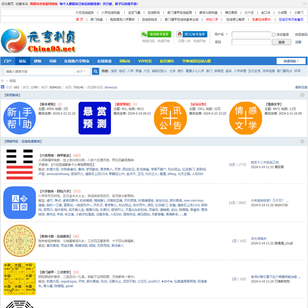 在線免費算命、八字算命、六爻預(yù)測、紫微斗數(shù)算命、易經(jīng)研究、周易算命預(yù)測、周公解夢、姓名測試、免費在線起名、手相面相、梅花易數(shù)、奇門遁甲、風(fēng)水堪輿、果老星宗、七政四余、六壬神課、彩票預(yù)測、股票證券、股市預(yù)測、人生運勢預(yù)測、每日運程、星座命理、在線抽簽占卜等綜合性易學(xué)研究和在線算命論壇。