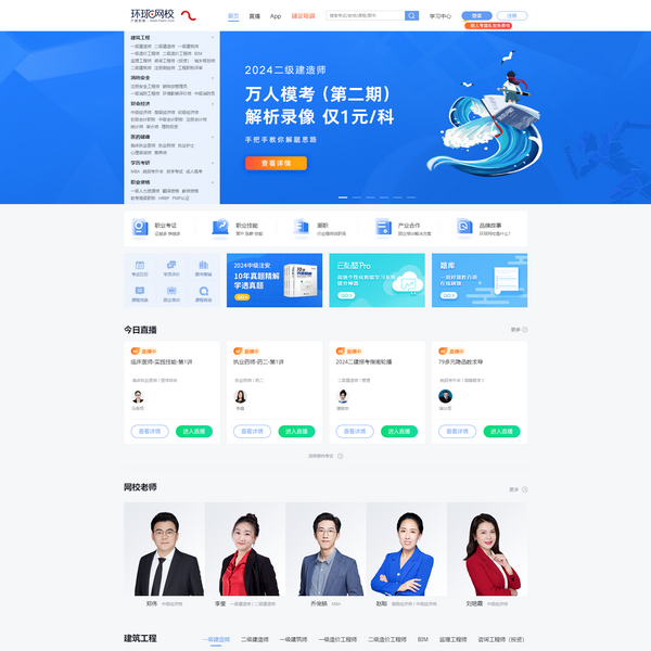 【環(huán)球網(wǎng)校官網(wǎng)】成立于2003年起,連續(xù)多年獲評十佳網(wǎng)絡(luò)教育機(jī)構(gòu),是職業(yè)教育行業(yè)知名的職業(yè)考試遠(yuǎn)程輔導(dǎo)機(jī)構(gòu),美國納斯達(dá)克上市企業(yè)歡聚時代(NASDAQ:YY)旗下品牌,致力打造以學(xué)員為中心、以教育為本、以創(chuàng)新驅(qū)動的在線職業(yè)教育平臺。
