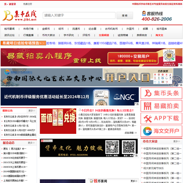 集幣在線是中國錢幣行業(yè)有影響力的電子商務網(wǎng)站,創(chuàng)辦于2002年,經(jīng)過十幾年的市場發(fā)展和資源積累,迄今已成為集藏門類齊全的錢幣專業(yè)門戶網(wǎng)站。2009年12月8日,集幣在線正式獲得浙江省通訊管理局批準,準許按照中華人民共和國增值電信業(yè)務經(jīng)營許可證載明的內(nèi)容進行增值電信業(yè)務。此外,集幣在線同時還是中國銀行間交易商協(xié)會金幣市場專業(yè)委員會和中國收藏家協(xié)會錢幣專業(yè)委員會指定的信息發(fā)布媒體。