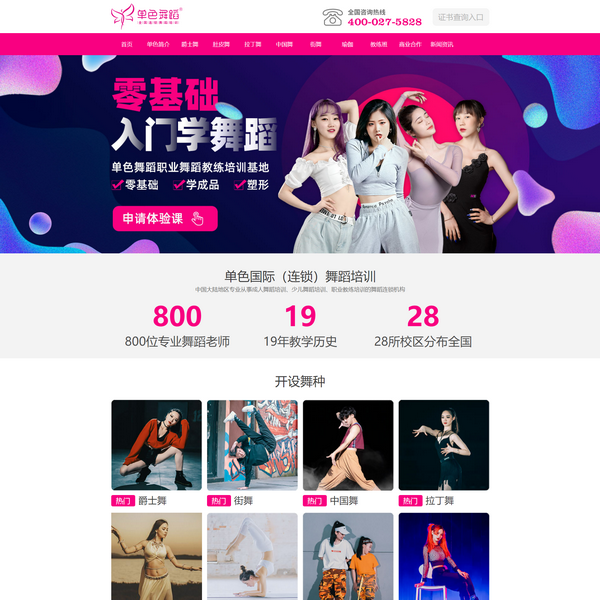 單色舞蹈是集中國舞、爵士舞、拉丁舞、街舞、肚皮舞于一體的舞蹈培訓(xùn)機構(gòu),目前在武漢、長沙、鄭州、西安、成都、重慶、深圳等位置都有直營分館!17年的舞蹈教育經(jīng)驗,中國舞蹈家協(xié)會5星級考級機構(gòu)+教學(xué)單位!