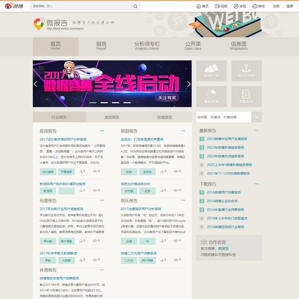 微報告(https://data.weibo.com/)已被三體網(wǎng)址大全收錄在網(wǎng)址百科信息庫中,所在分類目錄為”電腦網(wǎng)絡(luò) > 搜索 > 分類搜索大全“目錄,百科頁面地址:http://m.star-arquitectos.com/siteinfo/8020.html。三體網(wǎng)址大全匯聚國內(nèi)優(yōu)秀網(wǎng)站大全,是提升網(wǎng)站外部鏈接流行度以及影響力的權(quán)威分類目錄及收錄提交入口,歡迎廣大優(yōu)質(zhì)網(wǎng)站提交收錄申請。