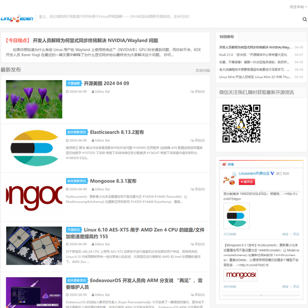 Linuxeden-Linux伊甸園是***的中文Linux/開源資訊門戶網(wǎng)站,提供***最快的Linux和開源資訊,24小時(shí)滾動(dòng)更新,全年無休。
