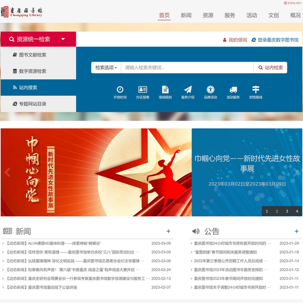 重慶圖書館重慶沙坪壩區(qū)鳳天大道106號(hào)渝ICP備10012999號(hào)-2重慶圖書館https://www.cqlib.cn/重慶重慶