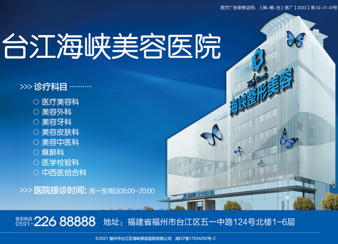 福州市臺(tái)江區(qū)海峽美容醫(yī)院福建省福州市臺(tái)江區(qū)五一中路124號(hào)北樓1-6層閩ICP備17034292號(hào)-2海峽美容醫(yī)院http://www.hxmryy.com/福建福州